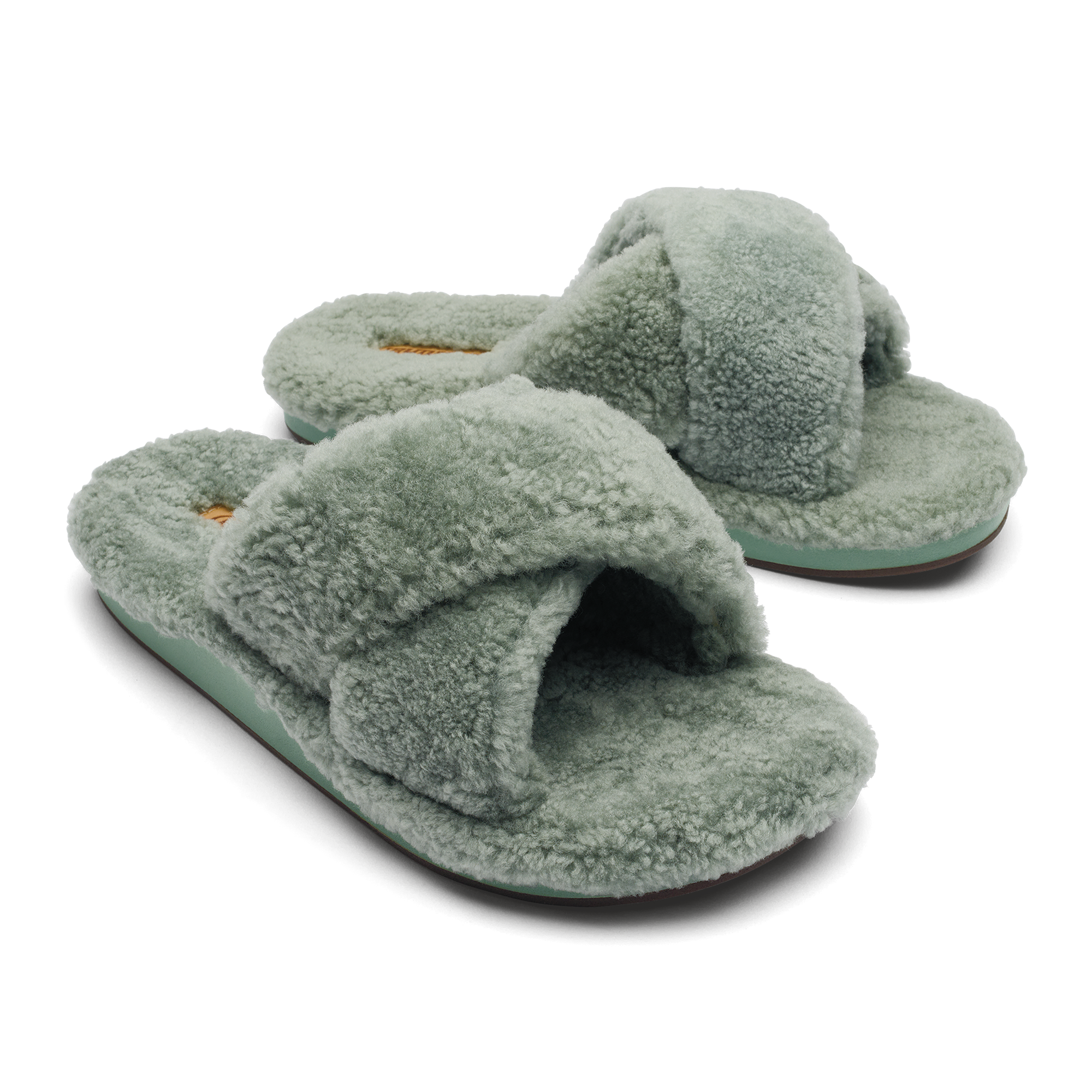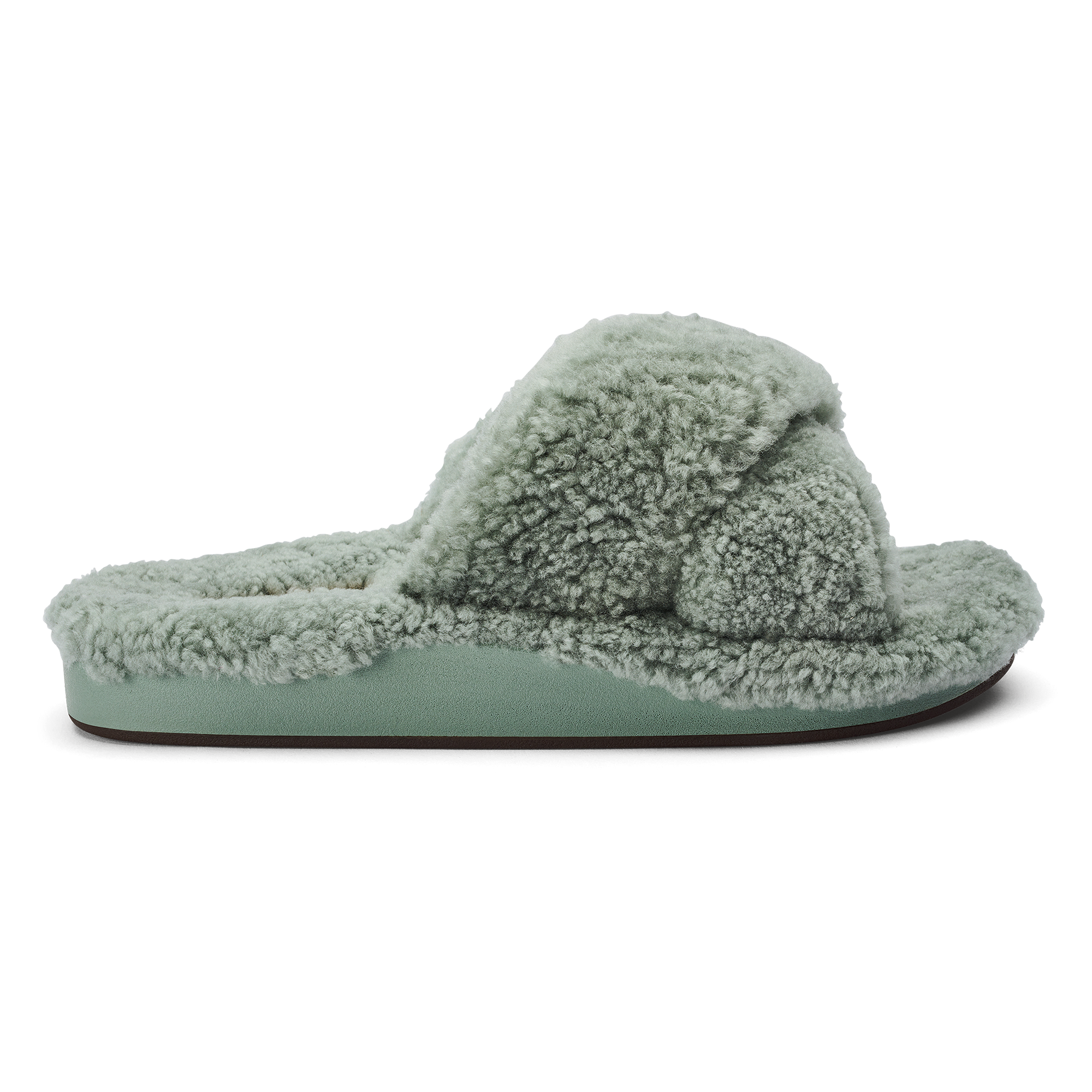 For the w??hine (women) who want to wear their OluKai slippers year-round. we designed the Hila Heu. Inspired by daydreams of Hawai’i during the colder months. this plush. curly. shearling slide will keep your feet warm and cozy. They’re so soft and warm that you’ll feel like you’re stepping into sun-drenched island sand.