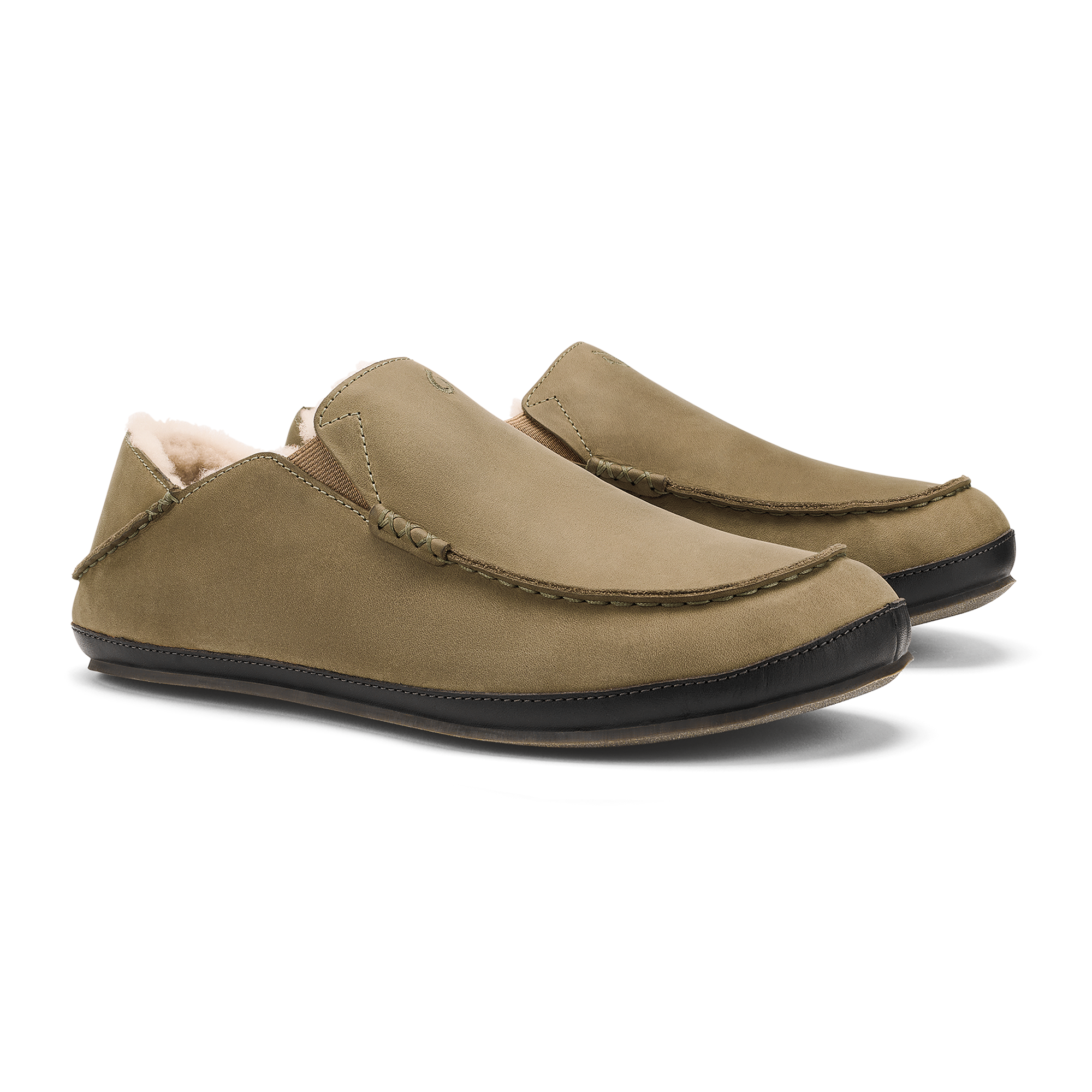 The Moloā Slipper is the purest form of relaxation. Made with premium nubuck leather. soft genuine shearling. and OluKai’s signature comfort. the Moloā will be your go-to slipper year-round. We crafted this slipper with natural materials known for their ability to regulate temperature and wick away moisture. helping to keep your feet comfortable and reduce odor. We use natural. high-character leathers. Hues and color tones can vary slightly from pair to pair.
