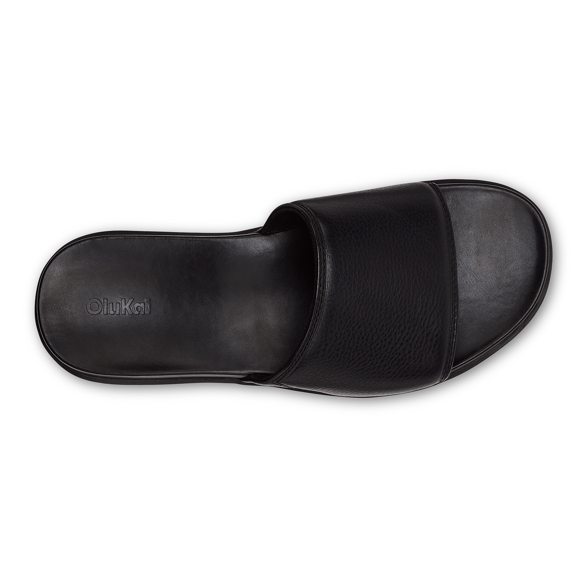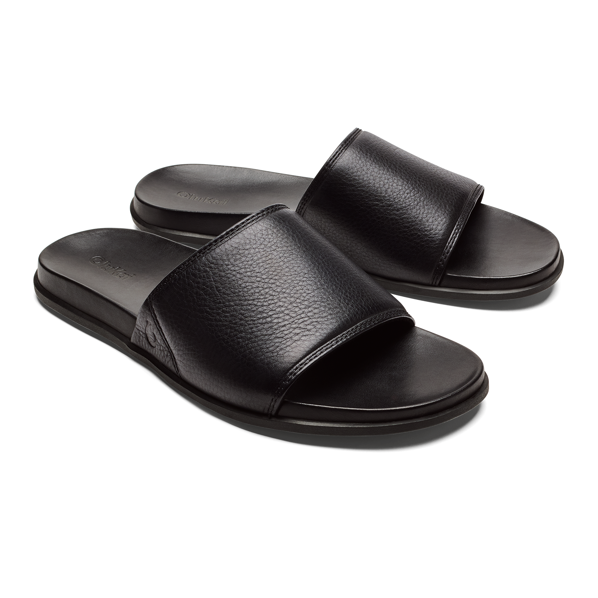 This sleek leather slide sandal combines timeless style with everyday functionality. The soft. durable premium leather delivers a comfortable fit. while the cushioned PU footbed offers long-lasting support that holds up to day-after-day wear. The Lauhala-inspired outsole celebrates Polynesian craftsmanship. adding a cultural touch to your look.
