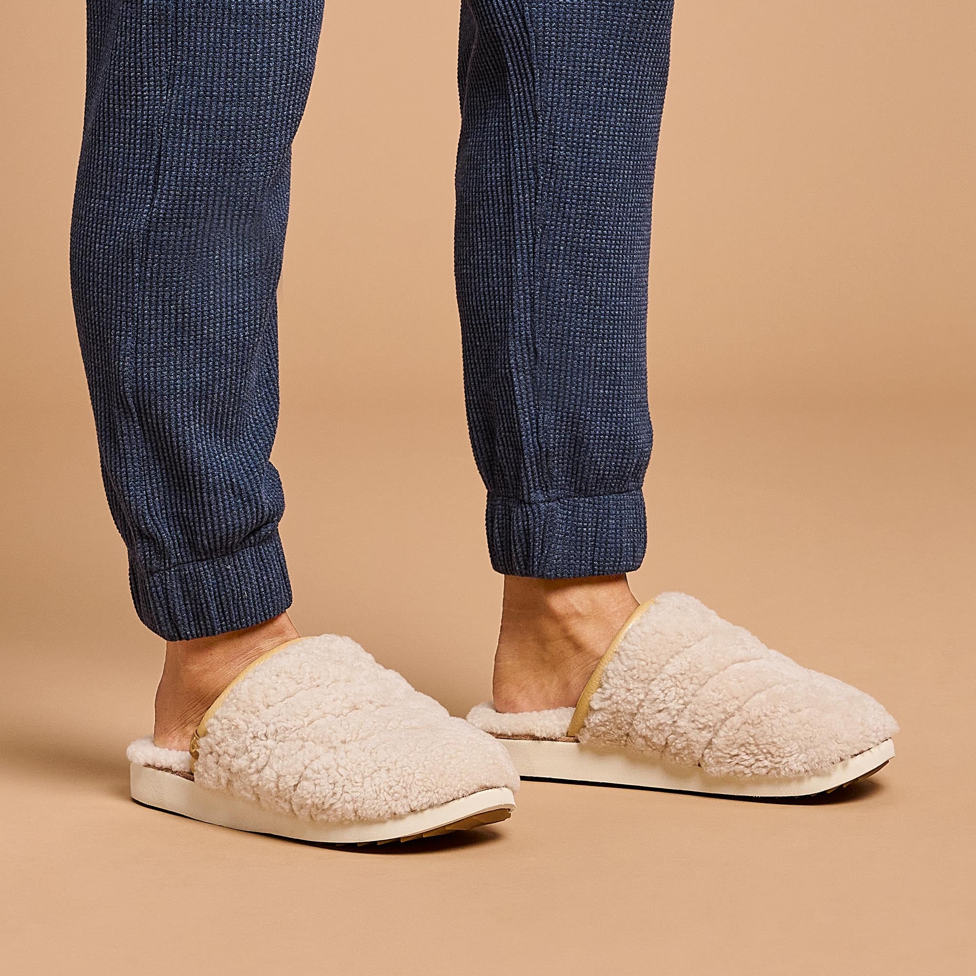 Sliding into our P??p?? Mua slipper feels like wrapping yourself in your coziest throw blanket. Wrapped in genuine fuzzy shearling. every step surrounds you with softness. Combining island ease with unbeatable warmth and comfort. these mule slippers are perfect for relaxing at home.