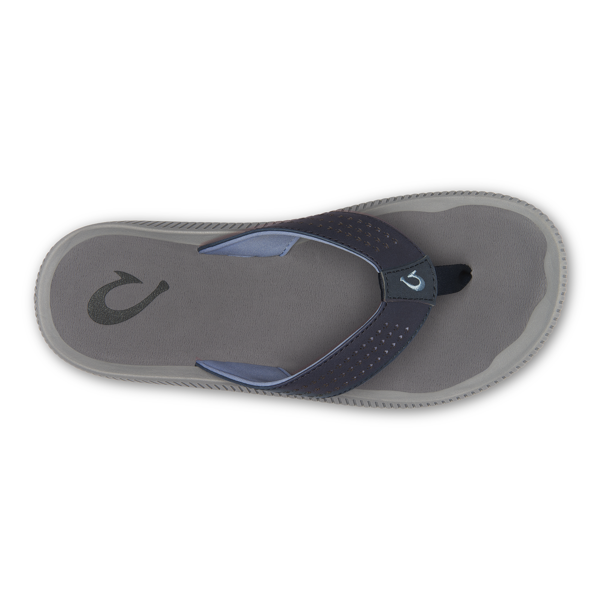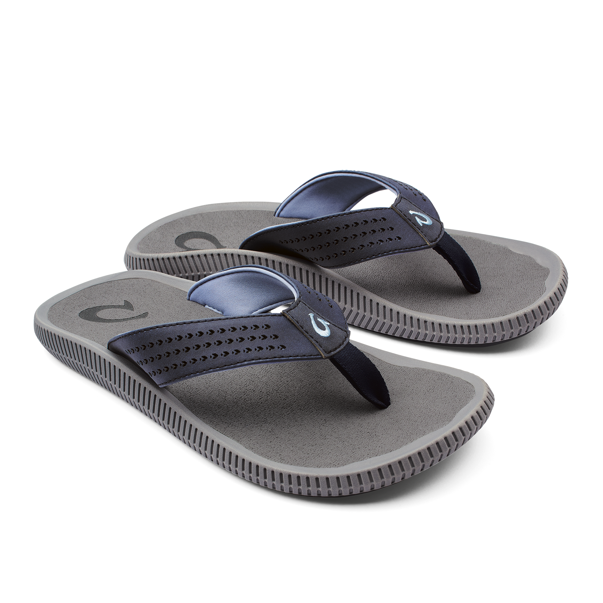 OluKai Craftsmanship: Features Kalo plant-inspired laser-cut upper straps and an embroidered hook logo.